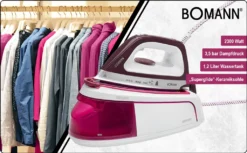 Bomann DBS 6034 CB Dampfbügelstation, Superglide-Keramiksohle, 3,5 Bar Dampfdruck, Elektronisches Anti-Tropf-System, 2300W, Weiß-flieder