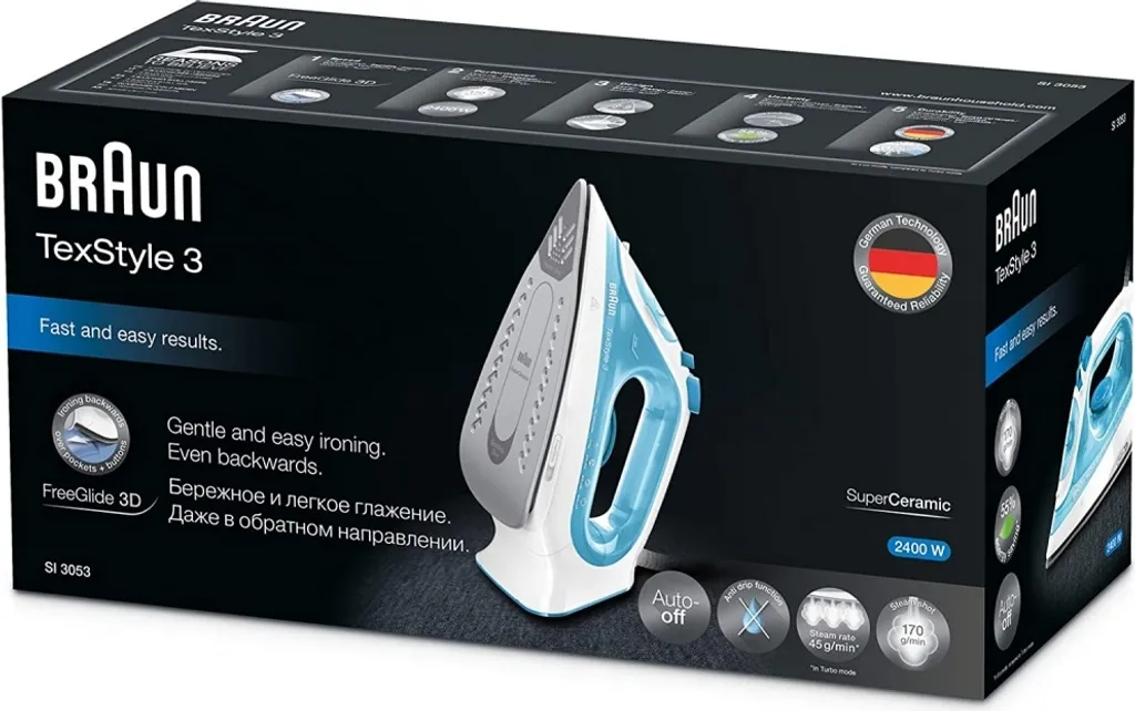 Braun SI 3053 BL TexStyle 3 Dampfbügeleisen Weiß/blau