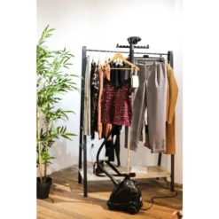 HOMCOM Dampfglätter Dampfbürste Faltbar Kleidung Hemden Dampfbügeleisen Mit 160 Ml Wassertank 1520 W Schnelles Aufheizen Aluminium Kunststoff Grau+Rosa 27,5 X 18,2 X 9 Cm