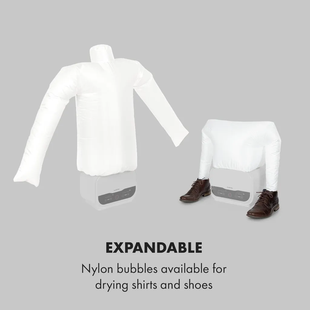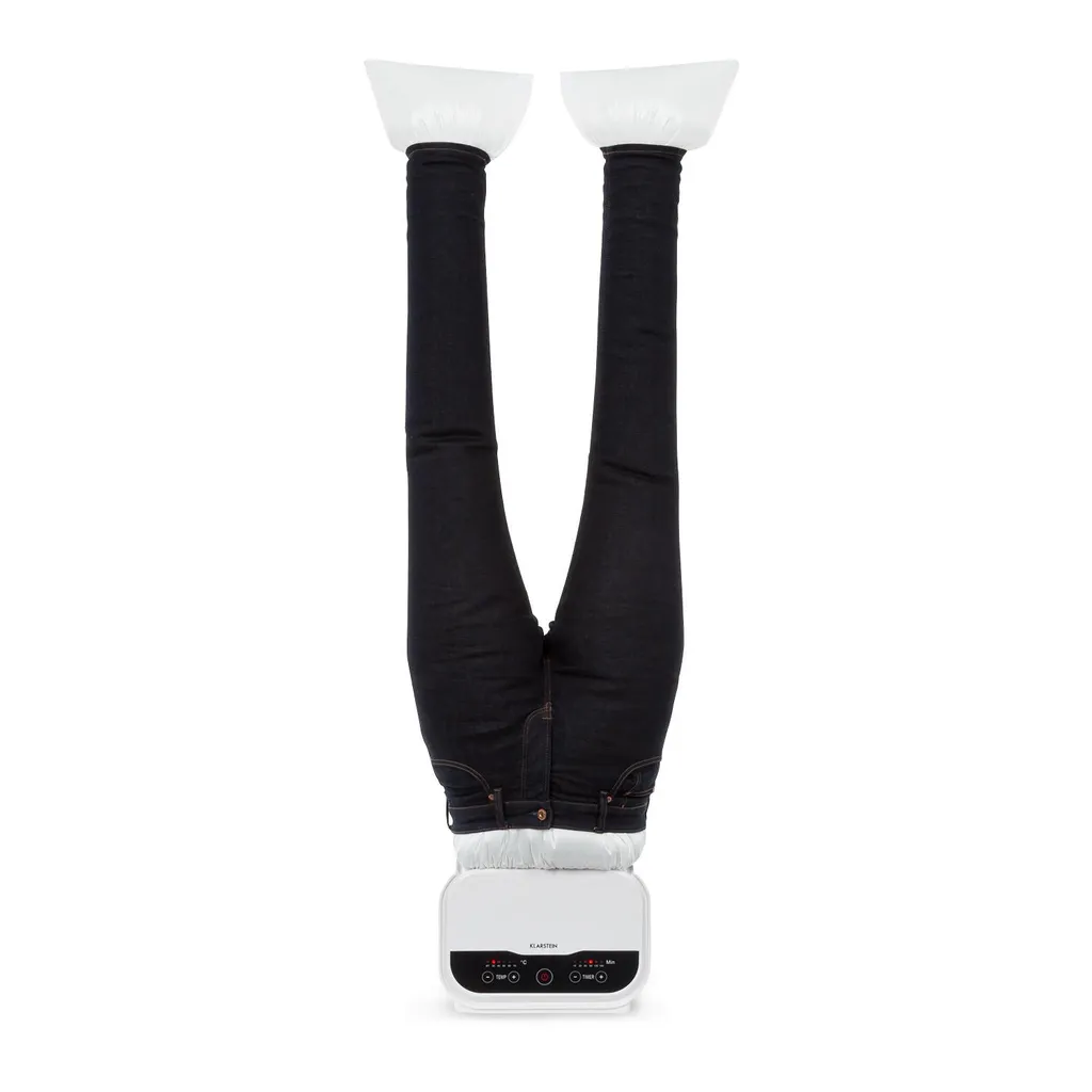 Klarstein ShirtButler Pro Automatischer Trockner Hosentrockner Hosenbügler , 2-in-1 System , 1200 Watt , Easy-Dry Technologie , Multi Size: S – XL , Thermal Safety System , 6-stufiger Timer: Bis 3 Stunden , Trocknungstemperatur: 30 – 70 °C , Bis Zu 2 Kg Maximalgewicht , LED-Kontrolllicht , Wechselbare Trocknungsaufsätze , Material: Oxford-Nylon , Weiß