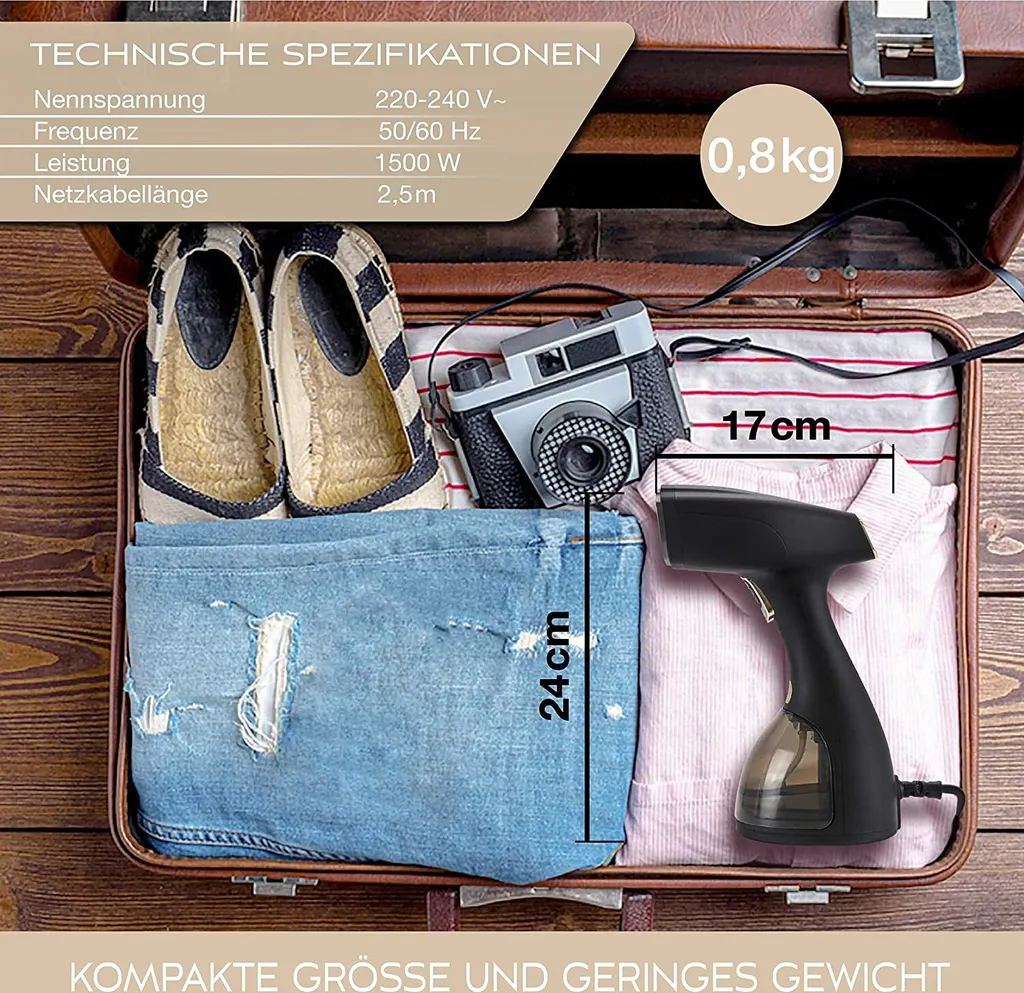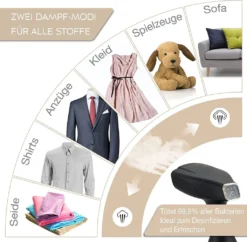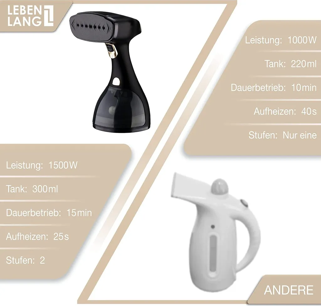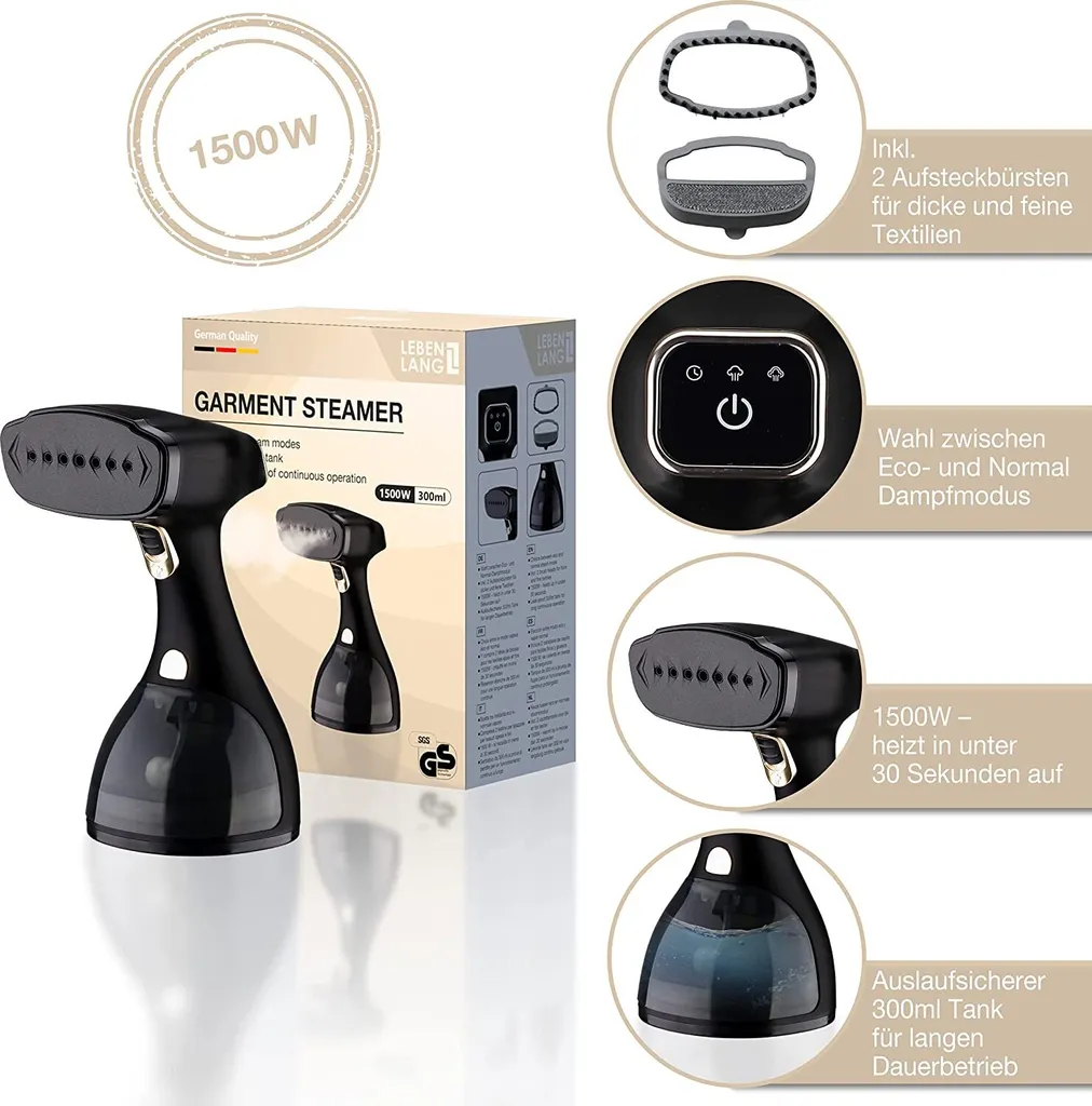 LEBENLANG Steamer Dampfglätter ( 1500W, 300ml, Quick & Go Automatik ) LCD Hand Dampfbürste Dampfglätter Kleidung & Hemden Bügeln – Dampfbügler Reise Bügeleisen Dampf Bügel – Steam Iron Bügelmaschine… Schwarz
