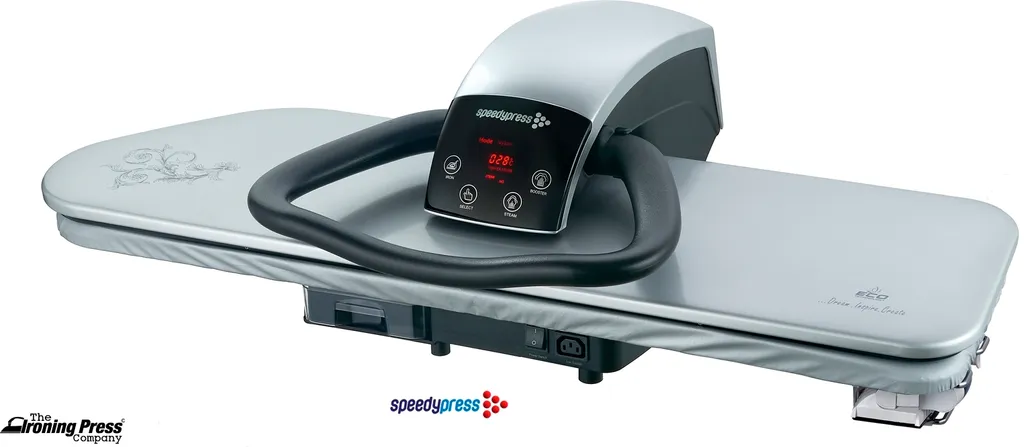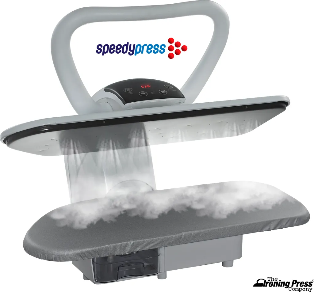 Professionelle 101HD Schwerlast Dampfbügelpresse 101cm Mit Höhenverstellbaren Ständer Von Speedypress – Silber (+ Bügeleisen, Ersatzabdeckung & Schaumstoff-Unterfilz Und Wasserfilterpatrone GRATIS)