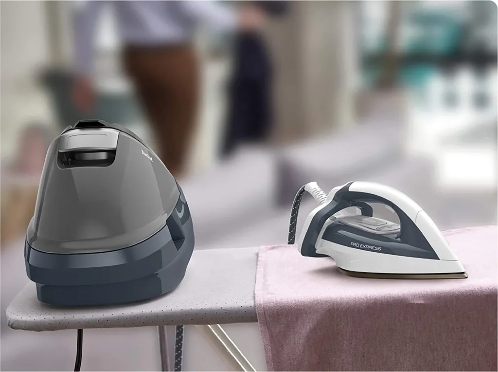 Tefal GV7832 Pro Express Dampfbügelstation |7,5 Bar| 1,6 L Wassertank-Fassungsvermögen | Anti-Kalk-Kollektor|120 G/Min. Konstante Dampfmenge|500 G/Min. Extra Dampfstoß| Eco Funktion|Weiß/Grau