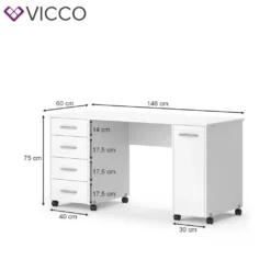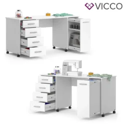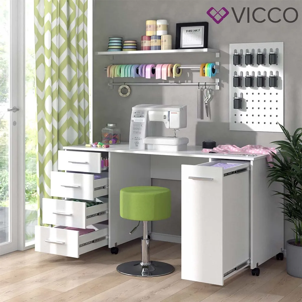 Vicco Nähtisch Verona Weiß 148 X 75 X 60 Cm Holzwerkstoff